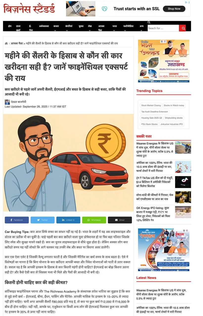 Taresh is featured and quoted by various leading newspapers, magazines and TV channels.